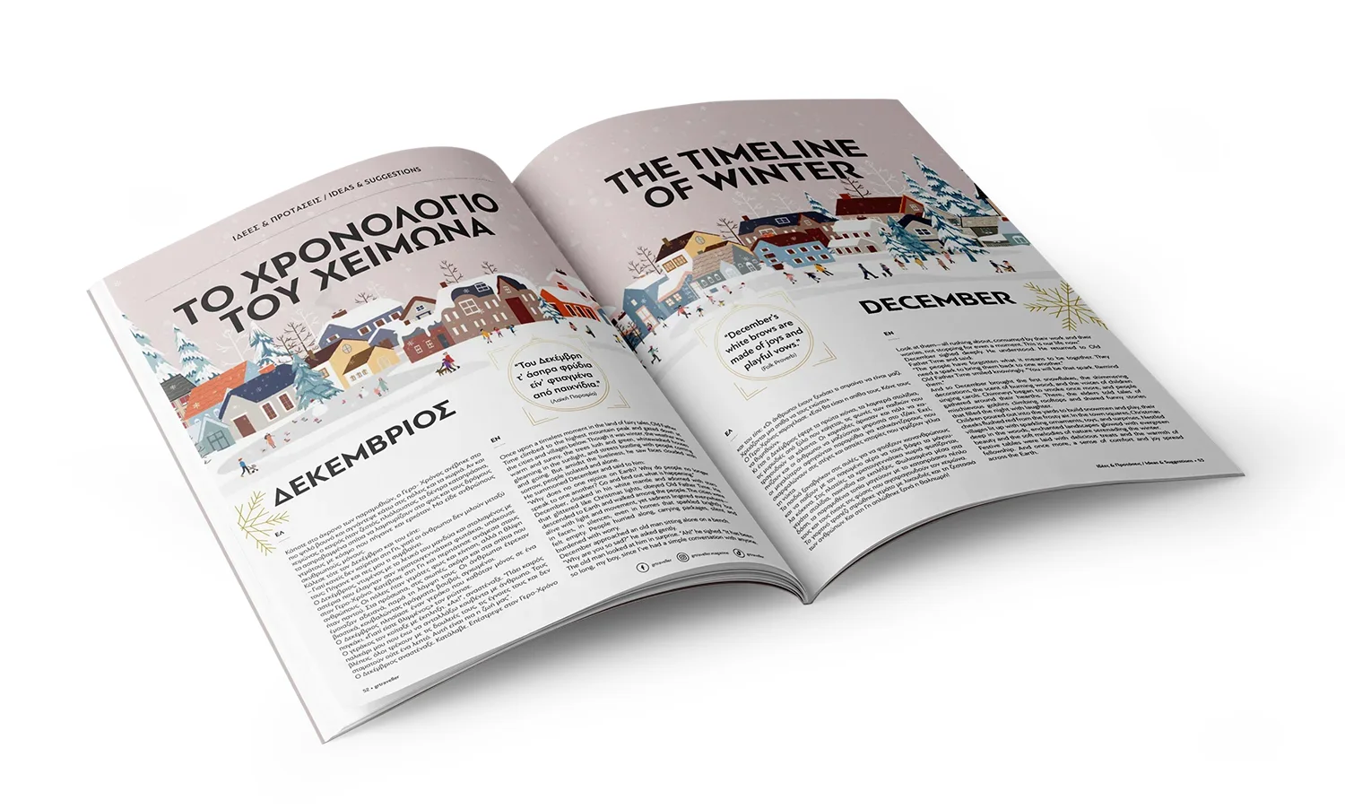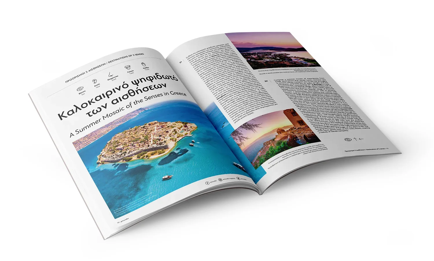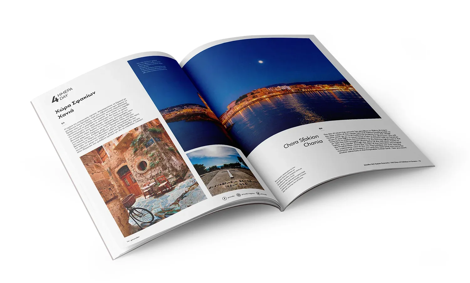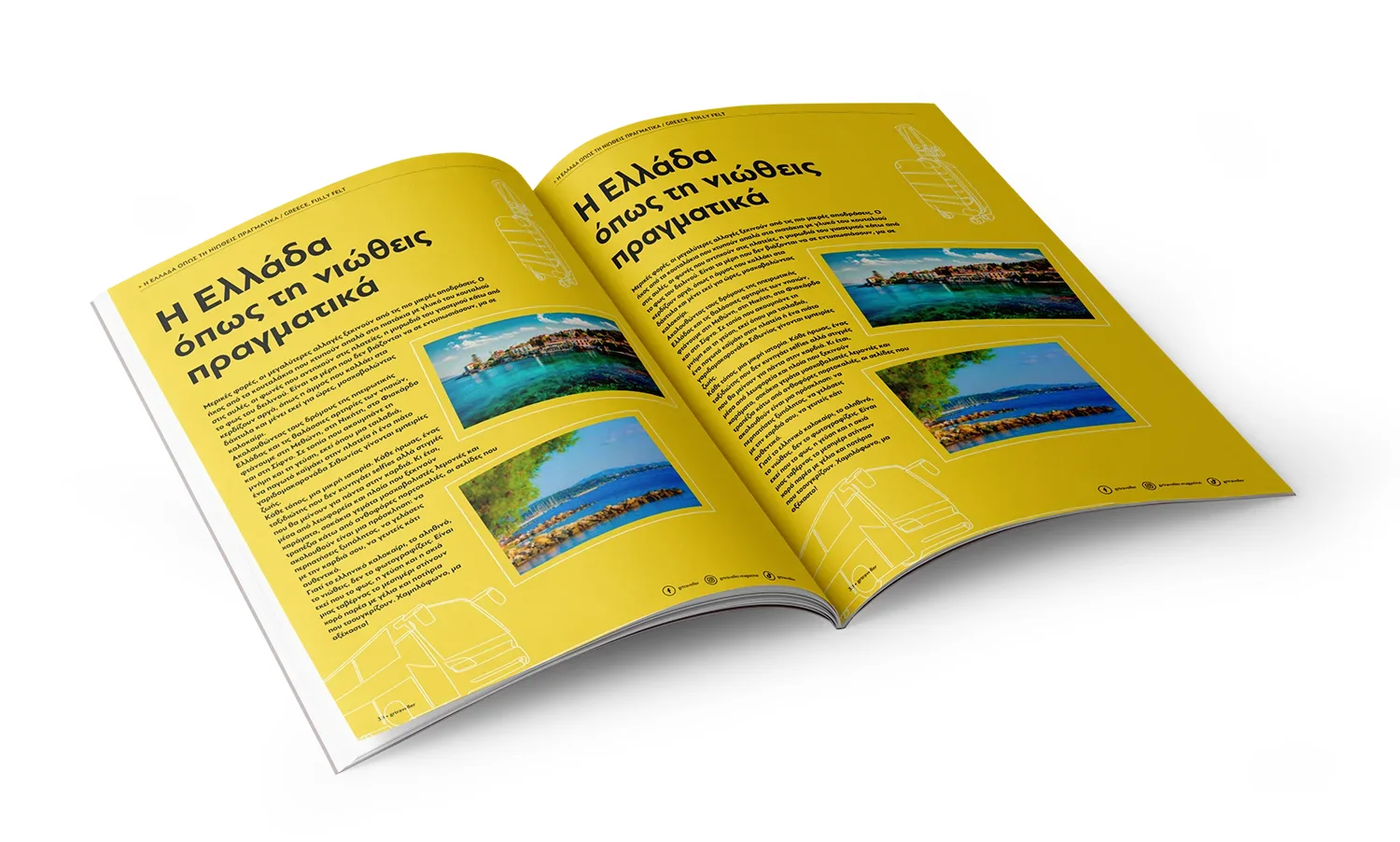 Το GR Traveller είναι ένα πολυσέλιδο ταξιδιωτικό περιοδικό που διαπλέκει περιεχόμενο για προορισμούς, εμπειρίες και πολιτισμό με πρωτότυπη οπτική αφήγηση. Σε αυτήν τη σειρά, η έμφαση ήταν στη δημιουργία εμπειρίας ανάγνωσης που ενθαρρύνει τον αναγνώστη να βιώσει κάθε τόπο, όχι απλώς να τον διαβάσει, με σύγχρονο, καθαρό editorial layout και δυναμική διάδραση εικόνας-λέξης.